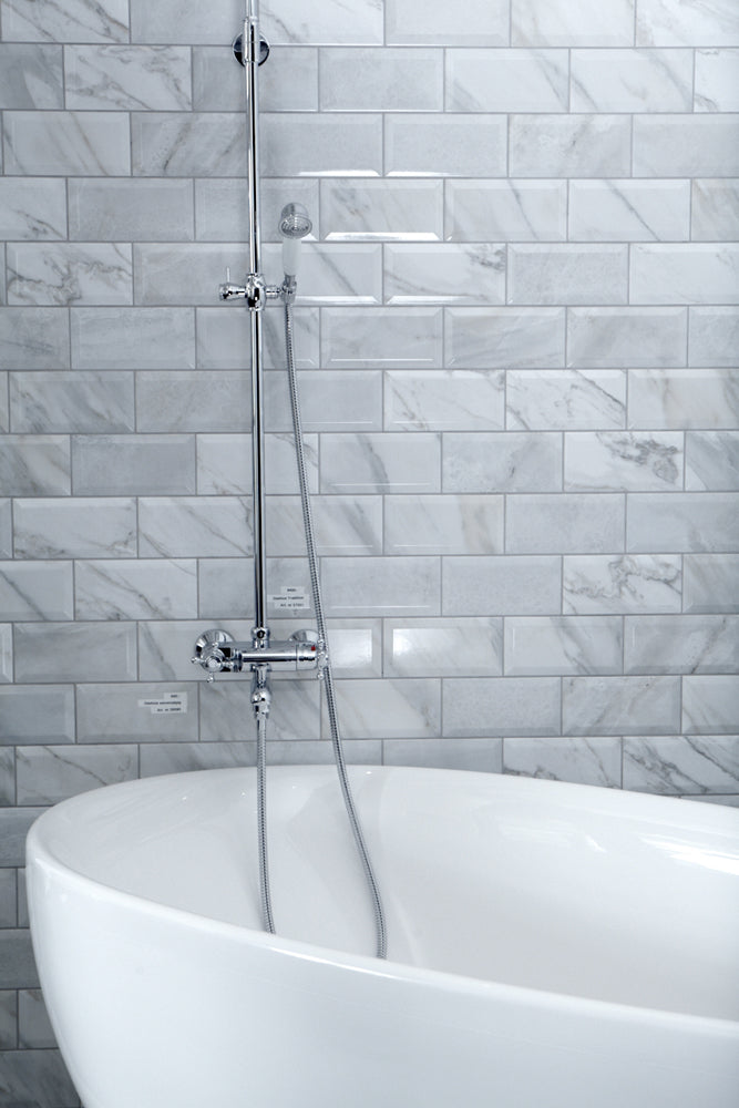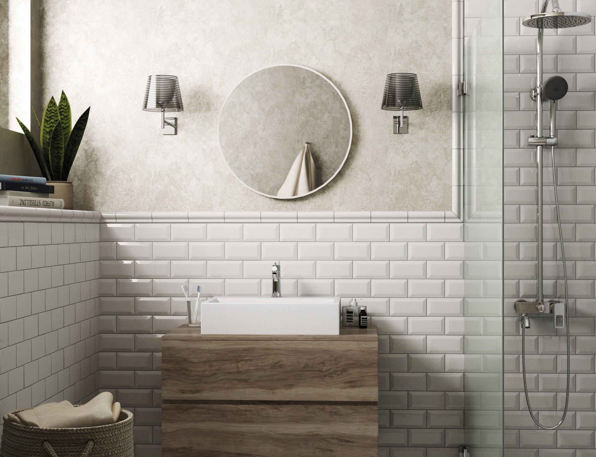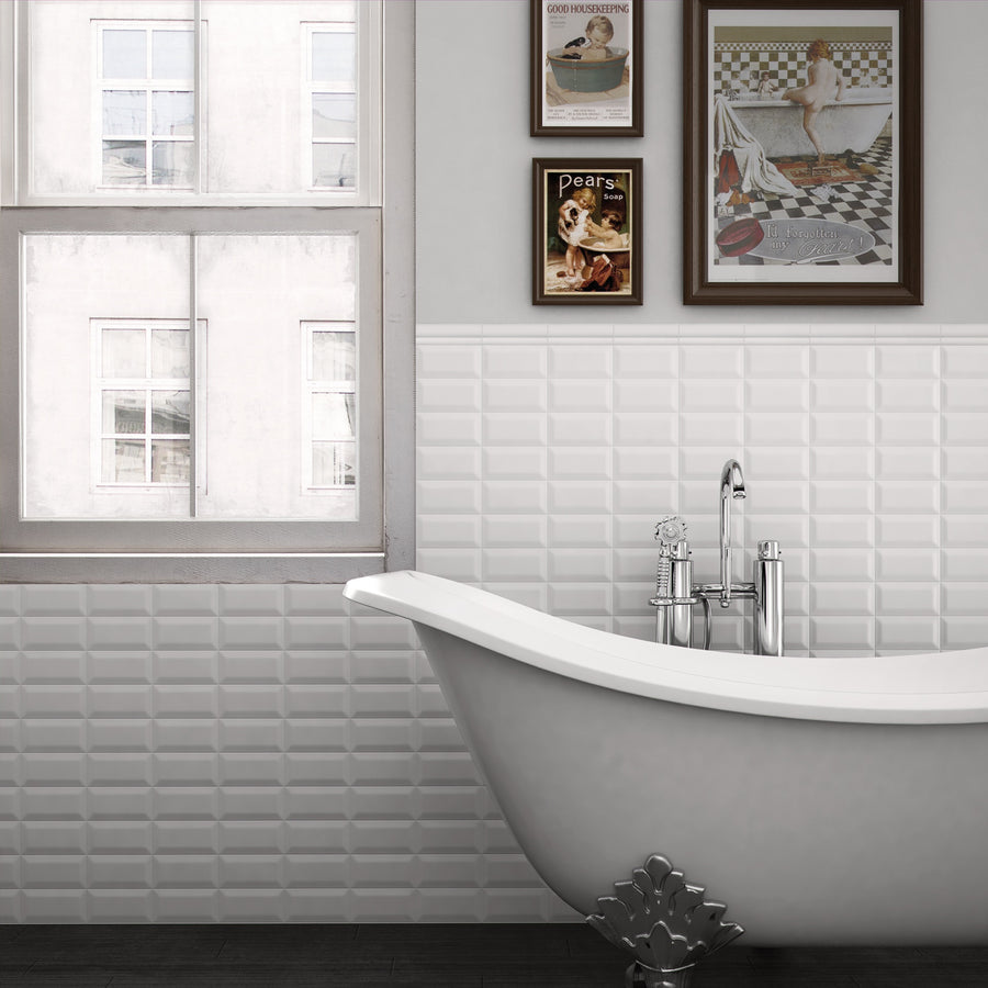 Ge dina väggar ett klassiskt och lyxigt uttryck med Biselado – en elegant kakelserie med fasade kanter och en ren, vit yta som lyfter rummet med subtil briljans och tidlös design. Den vita, blanka ytan framhäver ljuset och skapar en känsla av rymd och fräschör, samtidigt som de fasade kanterna ger djup och liv åt ytan för ett mer levande visuellt intryck.