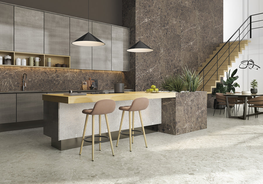 Det generösa formatet skapar stora, sammanhängande golvytor som förstärker känslan av rymd och harmoni, samtidigt som materialets funktionella egenskaper gör Capri perfekt för såväl vardagsrum och hall som kök och badrum.