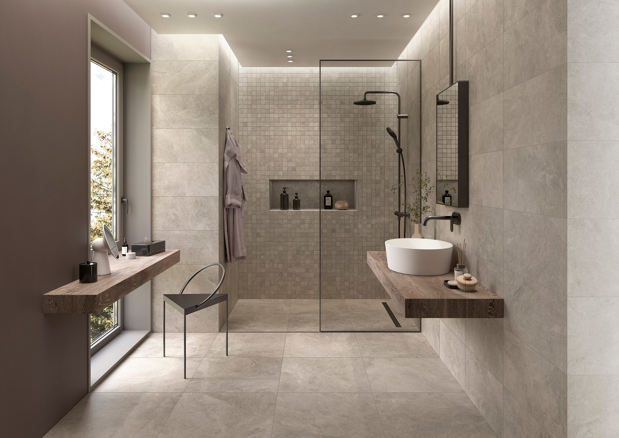 Serien finns i de naturligt vackra färgerna Milk och Earth, och i de populära formaten 60×60 och 30×60, vilket gör den perfekt för både privata och offentliga miljöer där man vill uppnå balans, kontinuitet och diskret lyx.
