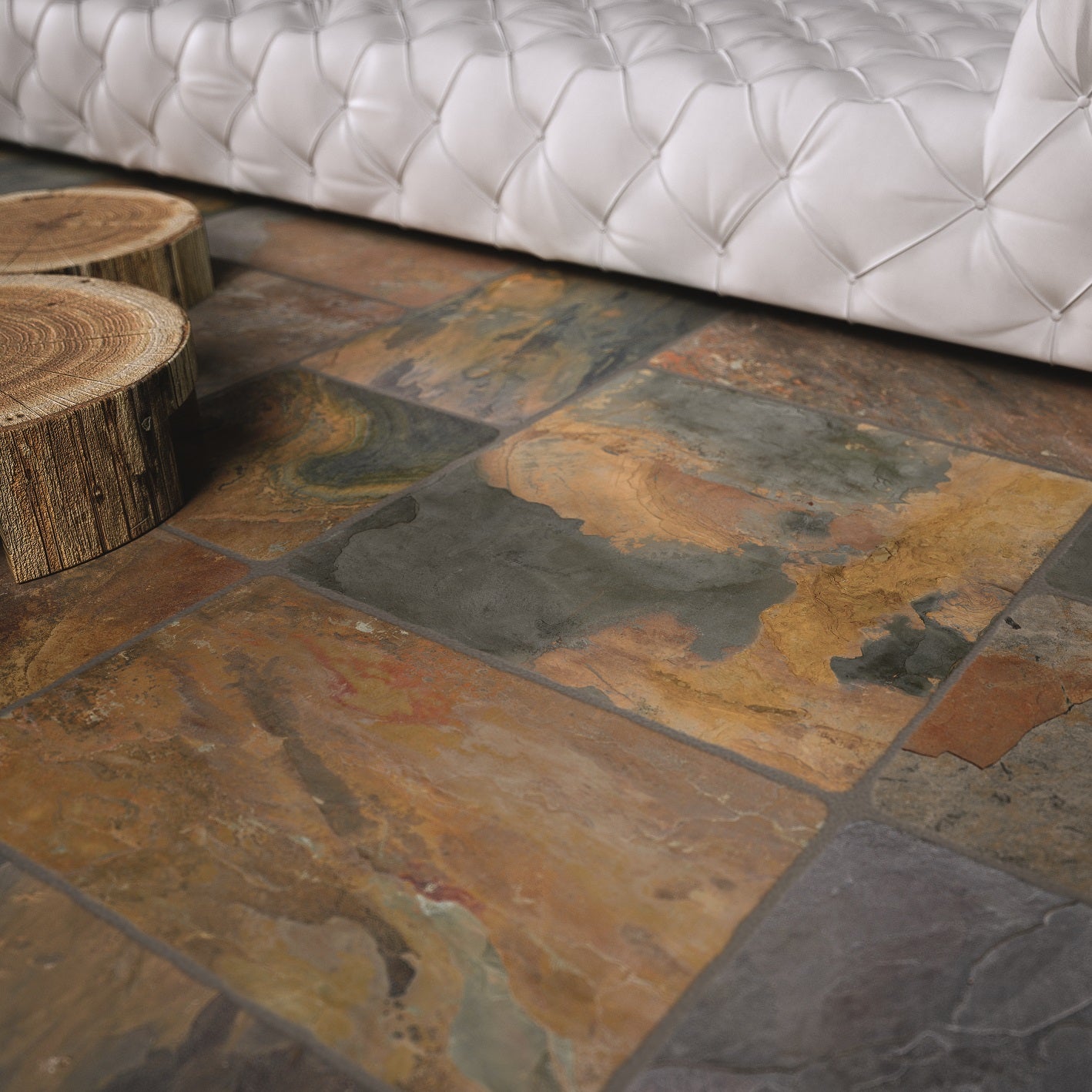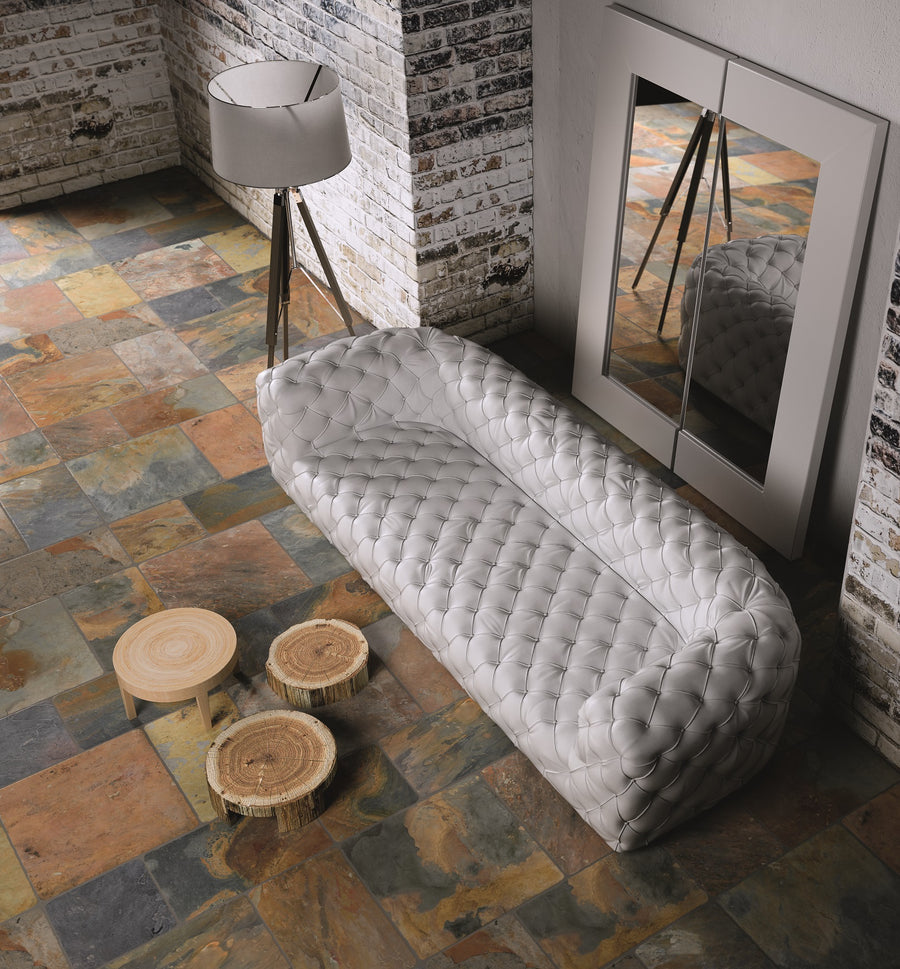 Lyft varje rum med detta fantastiska skiffergolv – en tidlös kombination av naturliga färgskiftningar, robust kvalitet och unik karaktär. Varje platta berättar sin egen historia genom mjuka toner av terrakotta, grått och jordnära nyanser som tillsammans skapar ett varmt och stilrent uttryck.